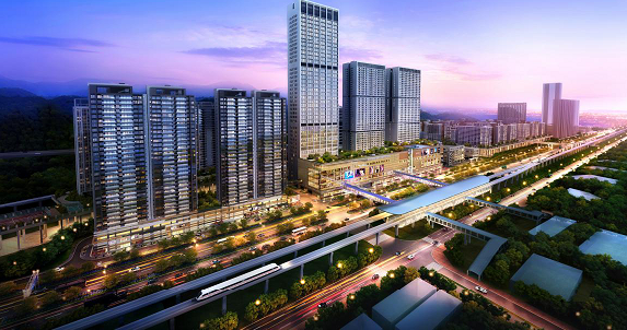 项目总建筑面积约26万㎡,是一座集住宅、精品公寓、写字楼、精品酒店及大型购物中心于一体的轨道物业综合体。