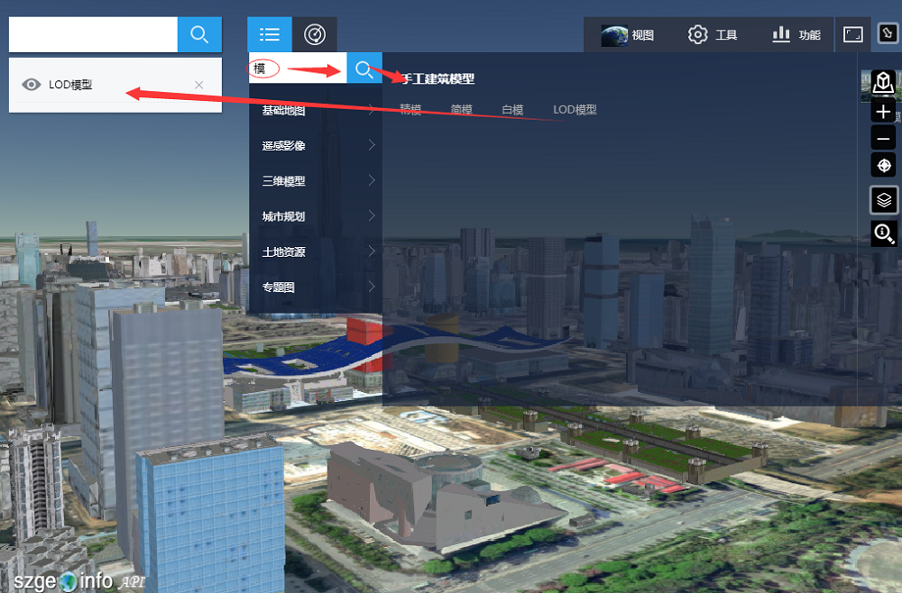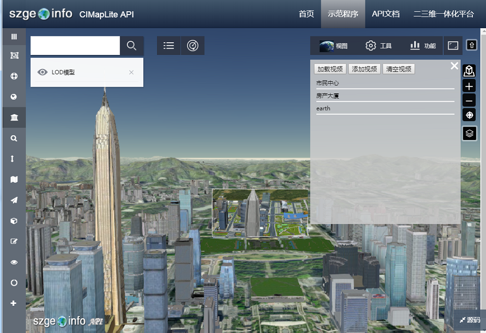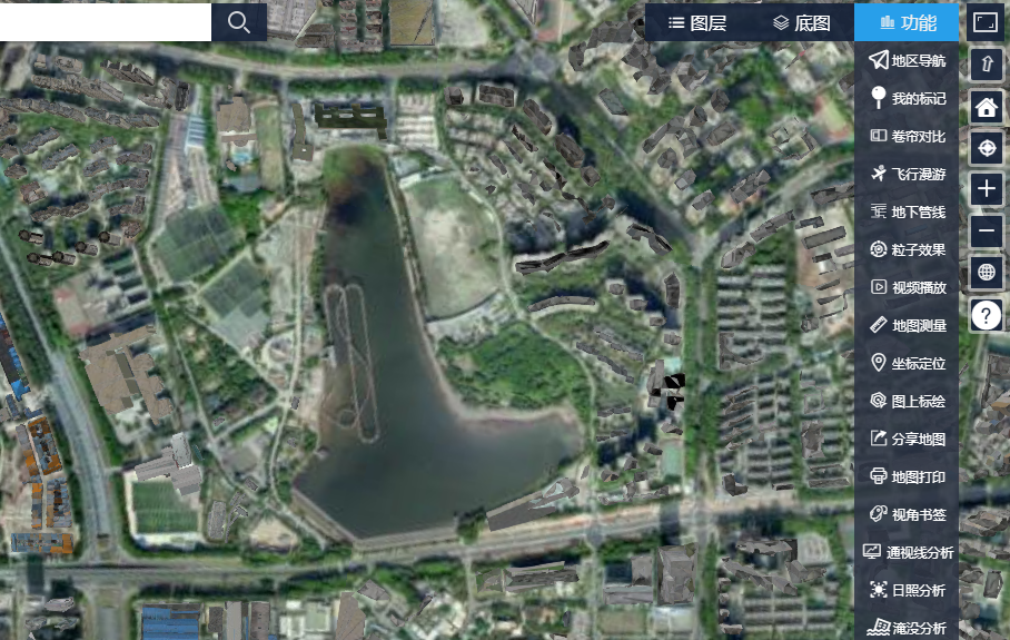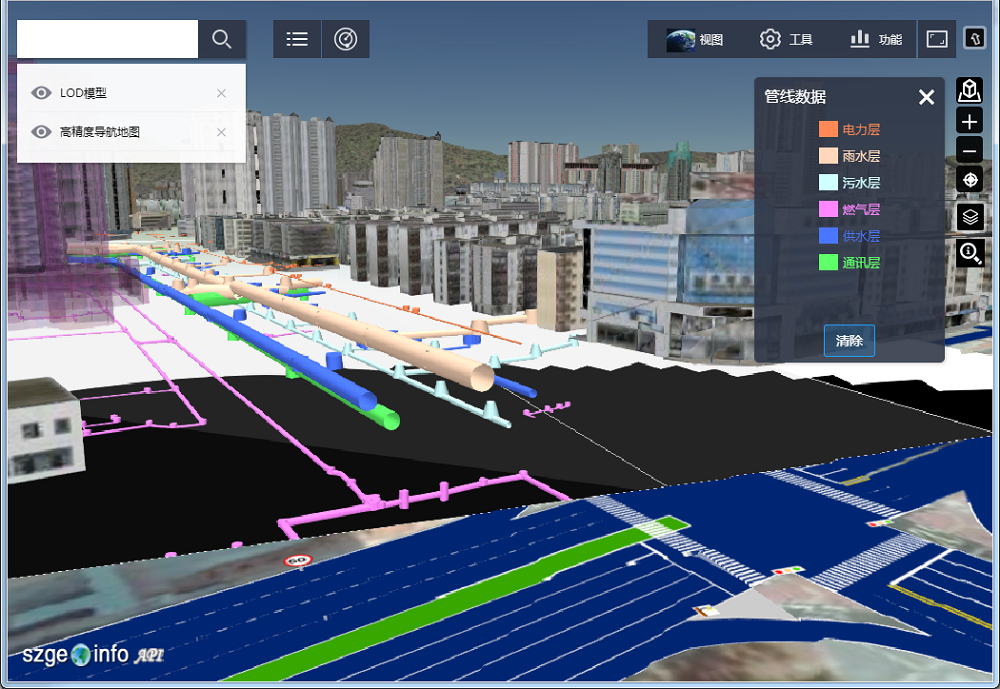 兼容WGS84和CGCS2000坐标的数据,可实现WMS、WFS、WMTS等符合OGC标准的二维地图服务的调用,能加载3DTiles和Json格式的地理空间数据,二三维数据能实现叠加展示和透明度调整,兼容谷歌、天地图、百度、高德和和腾讯地图及其实时路况数据;可实现不同精度地形和水波纹效果的融合;融入3DTiles格式三维数据,可实现倾斜摄影模型、三维建筑物模型、BIM和激光点云等数据的在线实时渲染。