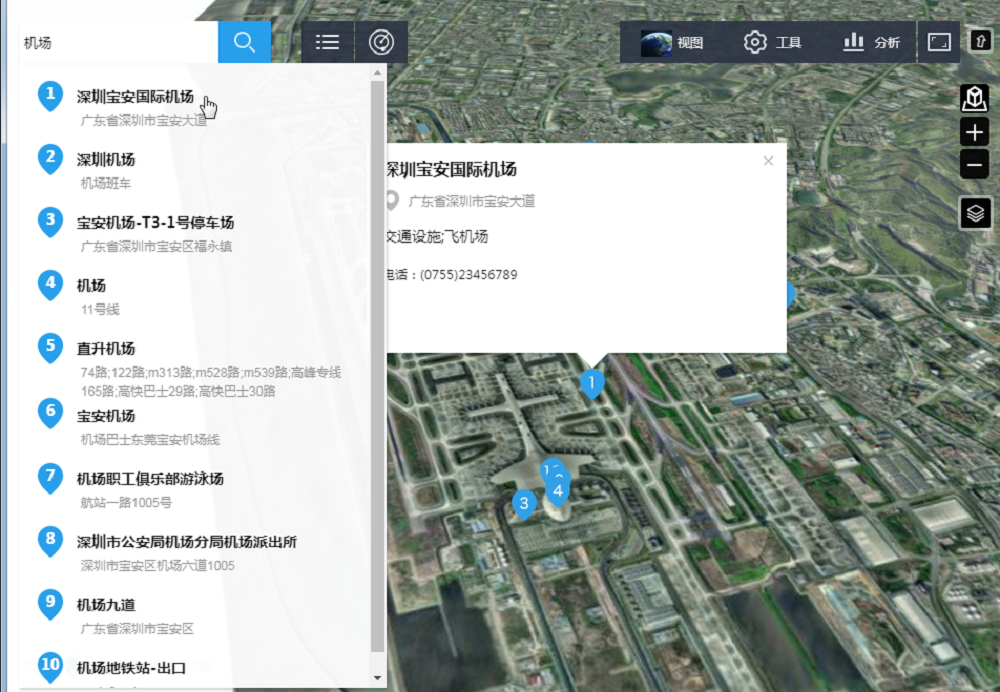将地址解析、地址匹配技术、坐标转换技术与百度搜索功能相融合,实现快速而准确的搜索定位。无论您想去哪里看,通过搜索框输入地名地址信息即可查找并定位到您感兴趣的地方;无论您在哪,通过PC端可定位到您IP地址的位置,通过手机可以定位到您的实时位置。此外,通过CIMapLite Server您可实现三维模型按区域、按建筑物编码和任意多边形范围进行检索和展示。